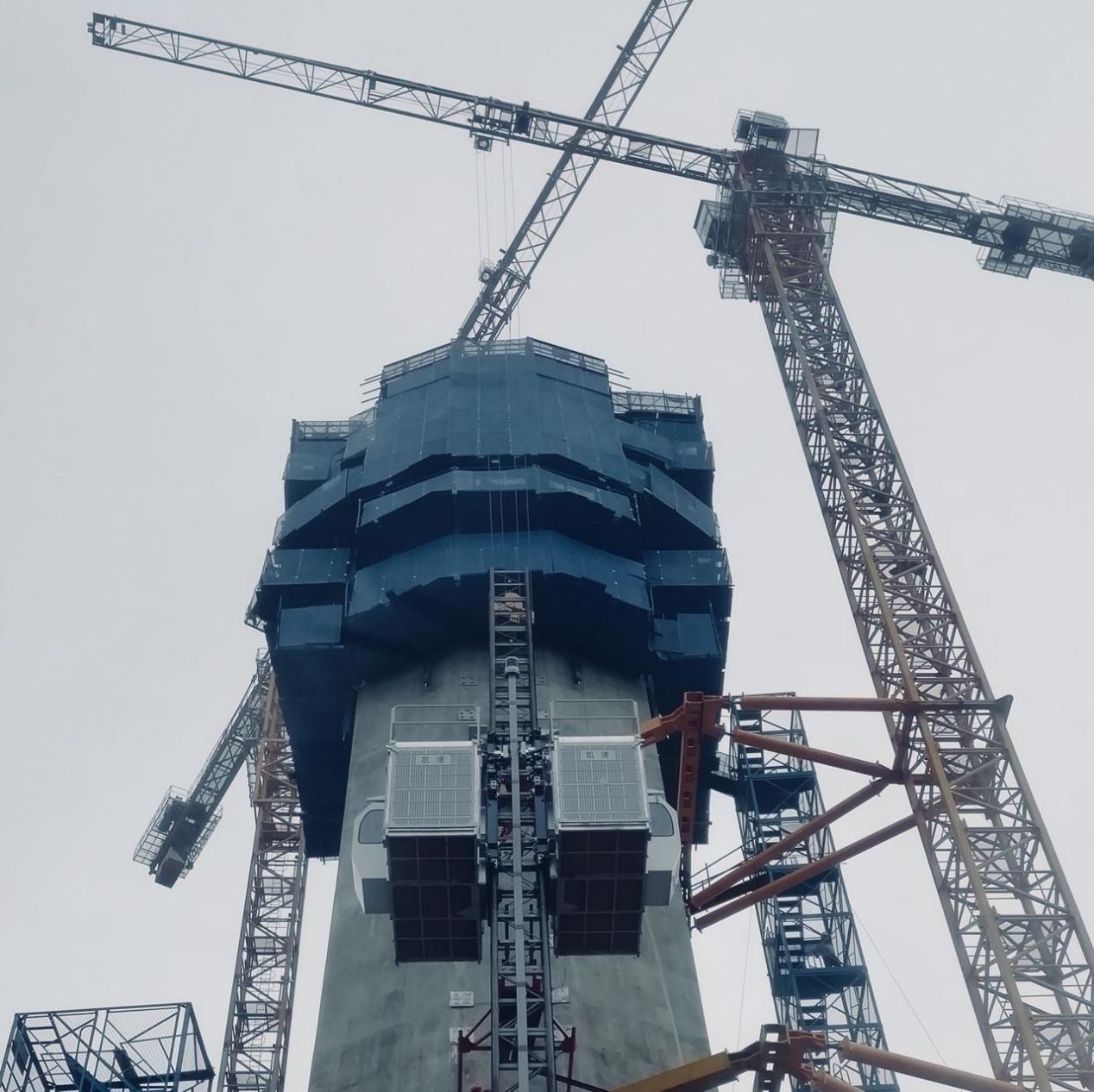 近日,廊坊凱博建設(shè)機(jī)械科技有限公司生產(chǎn)的斜、直線兩用施工升降機(jī)順利投入到廣東佛山“三水三橋”項(xiàng)目。此類型升降機(jī)承重架和吊籠經(jīng)過特殊設(shè)計(jì),角度變化范圍為0~15°,在不增加任何部件的情況下,通過簡單操作即可實(shí)現(xiàn)斜、直線轉(zhuǎn)換。斜線運(yùn)行時(shí),吊籠始終保持水平,角度為0時(shí),該機(jī)可做為普通直線升降機(jī)使用,吊籠尺寸和提升速度可根據(jù)用戶要求定制。該設(shè)備廣泛應(yīng)用于煙囪、橋梁等建筑工程。