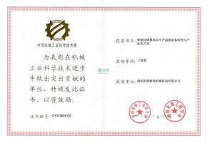 機械工業科學技術獎三等獎智能化鋼筋 部品生產成套設備研究與產業化開發