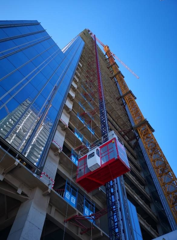 廊坊凱博建設(shè)機(jī)械科技有限公司設(shè)計(jì)研發(fā)的單軌雙籠高速施工升降機(jī)(額定運(yùn)行速度最高可達(dá)100m/min),主要用于超高層建筑主體施工工程。通過對(duì)施工升降機(jī)高效運(yùn)行、安全運(yùn)行、平穩(wěn)運(yùn)行技術(shù)研究及其產(chǎn)業(yè)化制造工藝技術(shù)研究,大大提升了設(shè)備性能,運(yùn)輸效率顯著提升,安全保護(hù)更加完善可靠,運(yùn)行過程更加平穩(wěn)舒適,有力的保障了施工人員高空作業(yè)安全,減少施工風(fēng)險(xiǎn),提升我國超高層建筑垂直運(yùn)輸設(shè)備的國際市場競爭力。